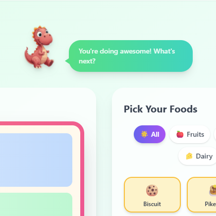 Kids can rate their foods using fun emoji and dino themes to express preferences without pressure.