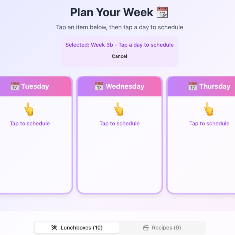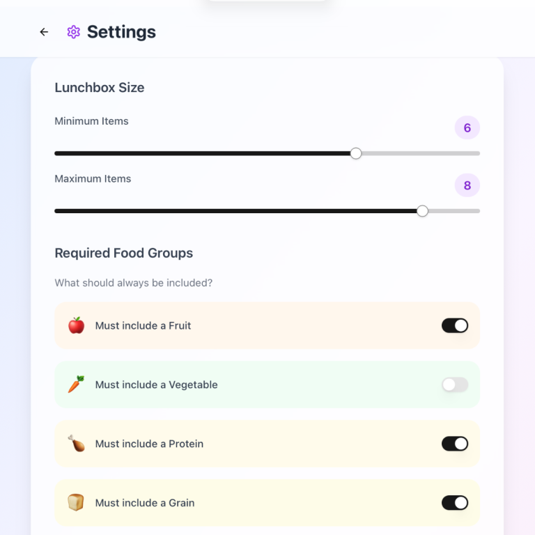 Plan lunches ahead each week with integrated recipes and food suggestions tailored for picky eaters.